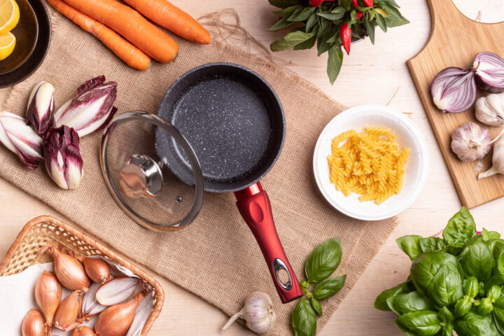Powłoka: ceramiczno-marmurkowa, dodatkowo powleczona nieprzywieralną powłoką non-stick, wolna od szkodliwych substancji PFOA