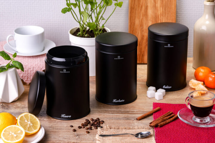 The set includes 3 boxes for Coffee, Sugar and Tea
